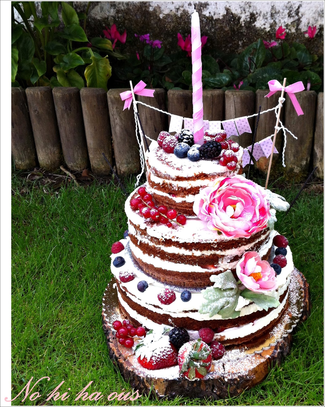 Mirant per blogs idees per pastissos vaig veure aquests pastissos tan de moda ara per bodes rústiques/campestres. S'anomenen naked cake's és a dir pastís despullat, perquè no porten cobertura, ara són l'última moda, deixem enrere el fondant.